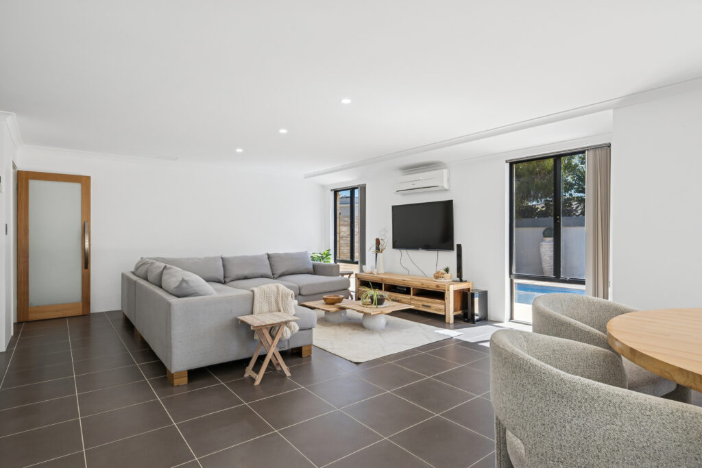– Reverse cycle air conditioning throughout plus split system to living